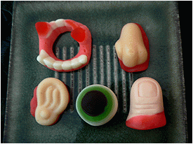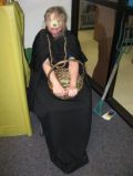 We had a bowl of candy set up at our candy stand as well as a "human in disguise" wearing a bear mask and black monk's robes who handed out candy to students and passersby.